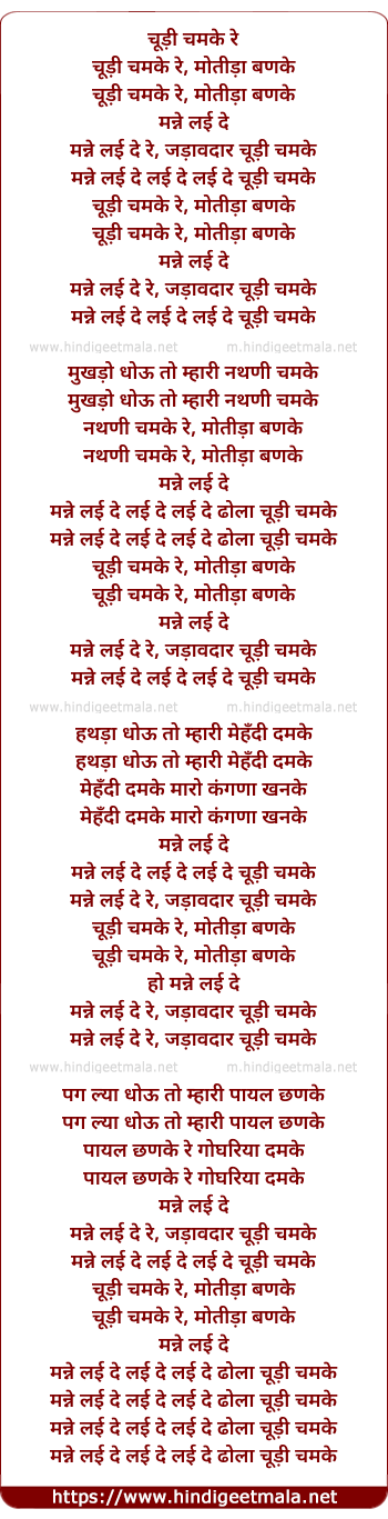 manne lai de lai de lai de dhola chudi chamke