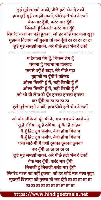 Lyrics of Chui Mui Samjho Nako - छुई मुई समझो नाकों