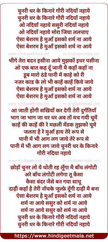chunri dhar ke kinare gori nadiya nahaye