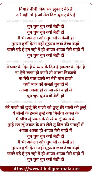 Lyrics of Chup Chup Kyo Baithi Ho, Mai Bhi Akela Tum Bhi Akeli Ho - चुप चुप चुप क्यों बैठी हो मैं भी अकेला तुम भी अकेली हो