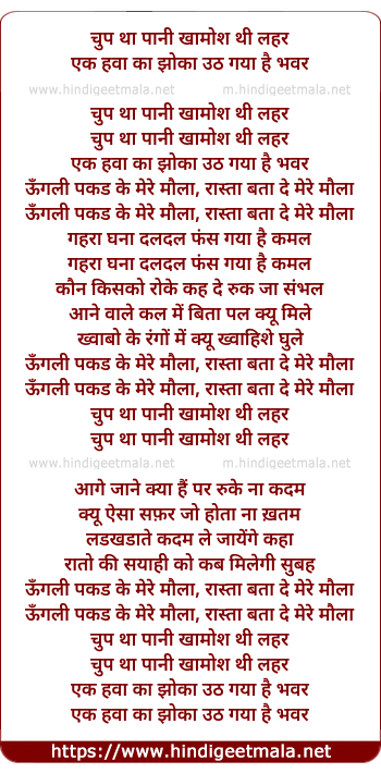 Lyrics of Chup Tha Pani Khamosh Thi Lehar - चुप था पानी खामोश थी लहर