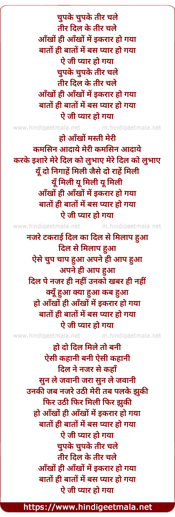 Lyrics of Chupake Chupake Teer Chalee - चुपके चुपके तीर चले