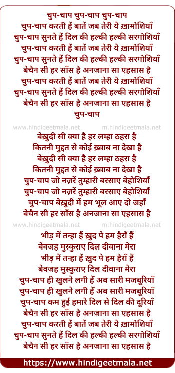 Lyrics of Chupchap Chupchap Chupchap - चुपचाप चुपचाप चुपचाप