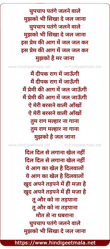 Lyrics of Chupchap Patange Jalne Wale - चुपचाप पतंगे जलने वाले
