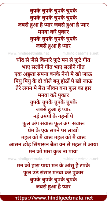 Lyrics of Chupke Chupke Jabse Hua Hai Pyar - चुपके चुपके जबसे हुआ है प्यार