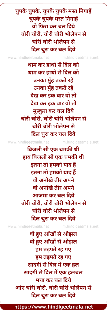 chori chori, chori chori bholepan se