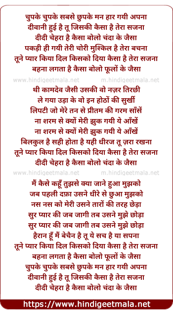 Poetic Translation - Lyrics of Chupke Chupke - चुपके चुपके