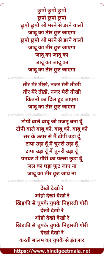 Lyrics of Chupo Chupo O Marne Se Darne Walo - छुपो छुपो छुपो