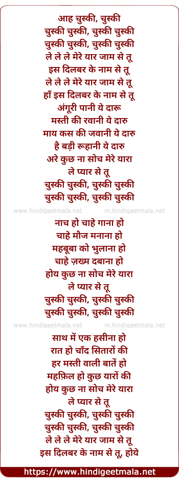 Lyrics of Chuski Chuski - चुस्की चुस्की
