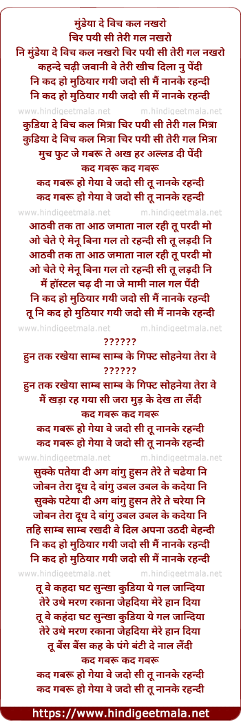 ni mundeya de Vich kal nakhro chirh payi si teri gal nakhro