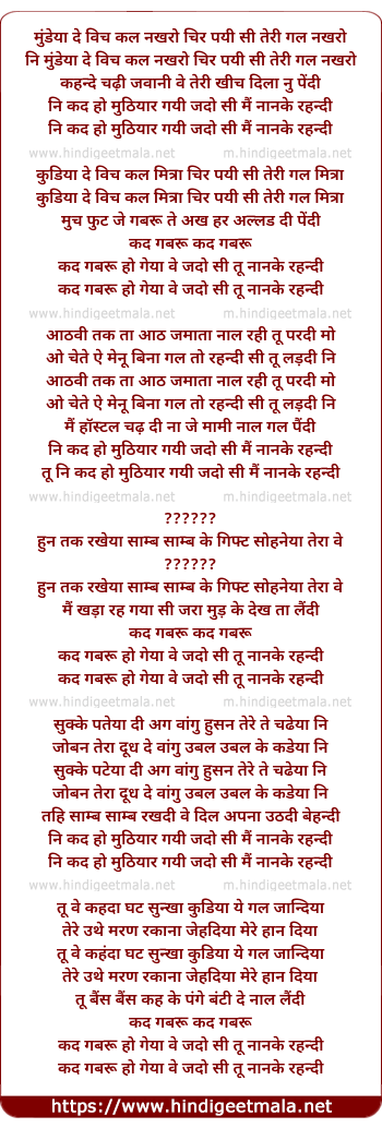 ni mundeya de vich kal nakhro chirh payi si teri gal nakhro