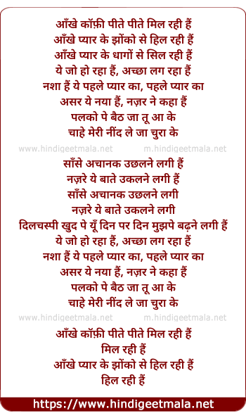 Lyrics of Coffee Peetey Peetey - कॉफ़ी पीते पीते