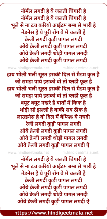Lyrics of Crazy Lagdi Kudi Pagal Lagdi - क्रेजी लगदी कुड़ी पागल लगदी