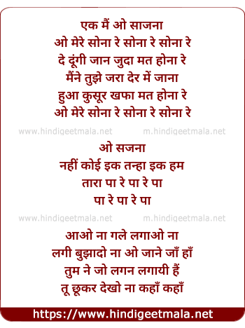 Lyrics of Cultural Amalgamation - एक मैं ओ साजना