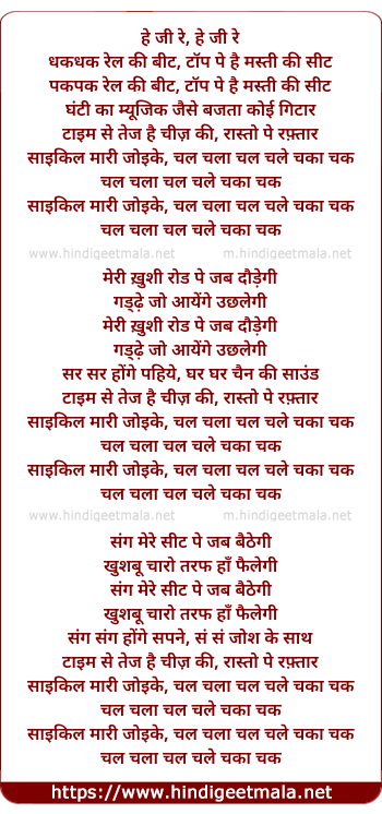 Lyrics of Cycle Mari Joike - साइकिल मारी जोइके