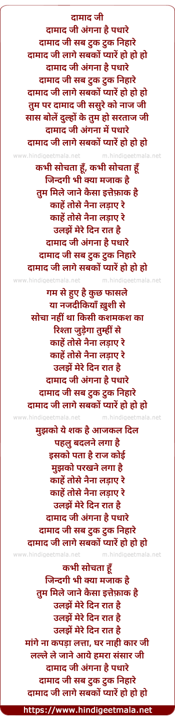 Lyrics of Damad Ji Anagana Hai Padhare - दामाद जी अंगना है पधारे