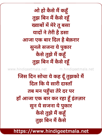 o ho kaise tujhe main kahu