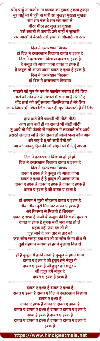 Lyrics of Daawat-e-ishq - दावत-ए-इश्क
