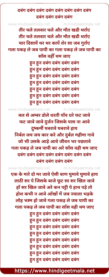 Lyrics of Dabangg Reloaded (Remix) - दबंग