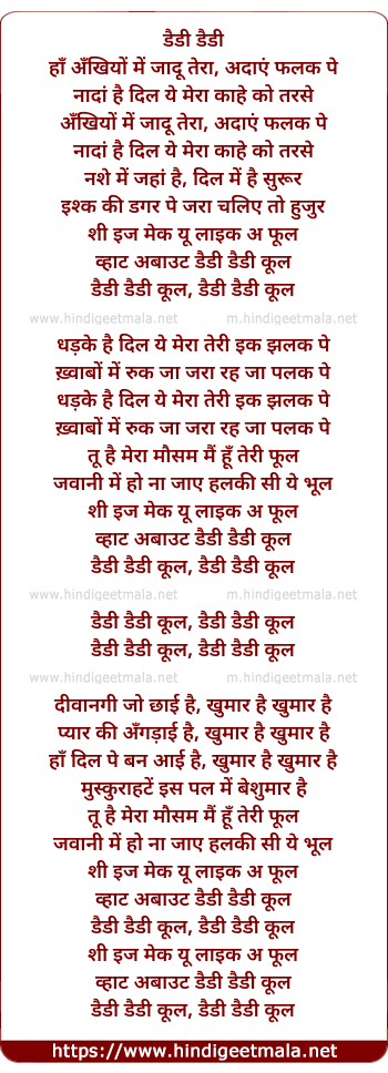 Lyrics of Daddy Daddy Cool - डैडी डैडी कूल