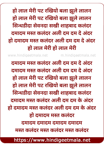 Lyrics of Damadam Mast - हो लाल मेरी पट रखियो बला झूले लालन