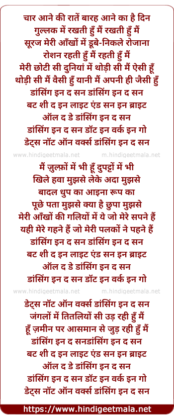 Lyrics of Dancing In The Sun - डांसिंग इन दा सन