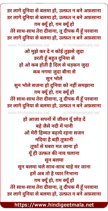 dar lage duniya se balma ho, ulfat na bane afsana