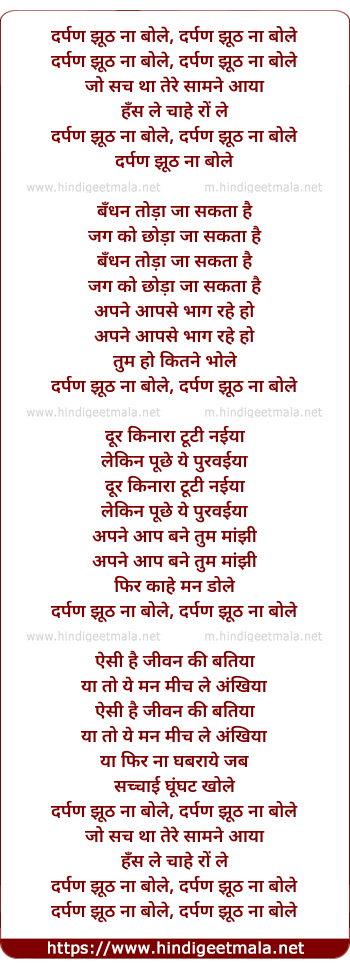 Lyrics of Darapan Jhuth Na Bole - दर्पण झूठ ना बोले