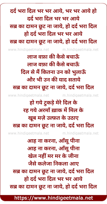 Lyrics of Dard Bhara Dil Bhar Bhar Aaye - दर्द भरा दिल भर भर आये