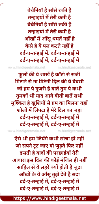 Lyrics of Dard-E-Tanhai Mein - दर्द-ए-तन्हाई में