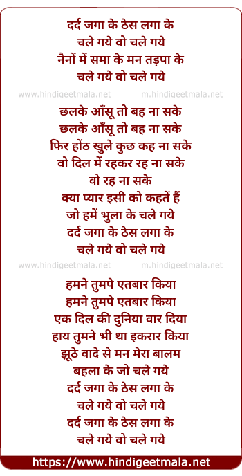 Lyrics of Dard Jaga Ke Thes Laga Ke - दर्द जगा के ठेस लगा के