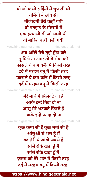 Lyrics of Dard Mein Marham Banu Main Kisi Tarah - दर्द में मरहम बनूँ मैं किसी तरह