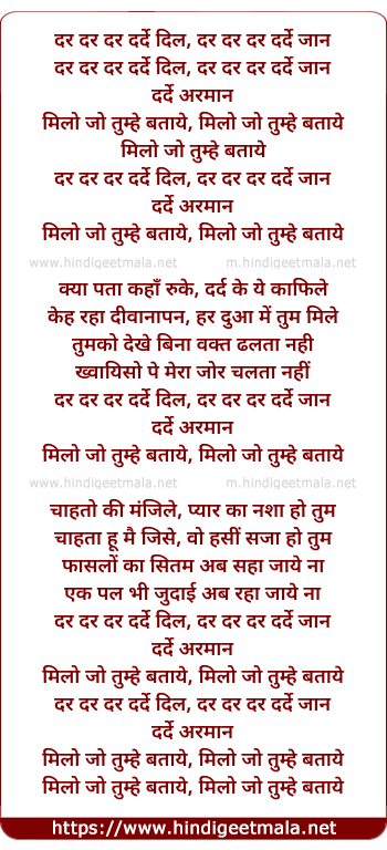Lyrics of Darde Dil (Remix) - दर दर दर दर्दे दिल, दर दर दर दर्दे जान