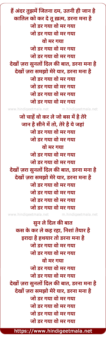 Poetic Translation - Lyrics of Darna Mana Hai - डरना मना है