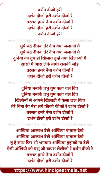 Lyrics of Darshan Dijo Hari Darshan Dijo Re - दर्शन दीजो हरी दर्शन दीजो रे