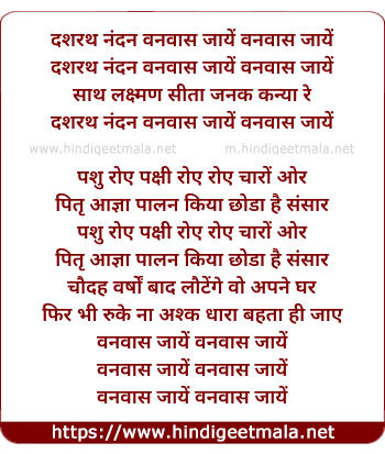 Lyrics of Dashrath Nandan Vanvas Jayein - दशरथ नंदन वनवास जायें