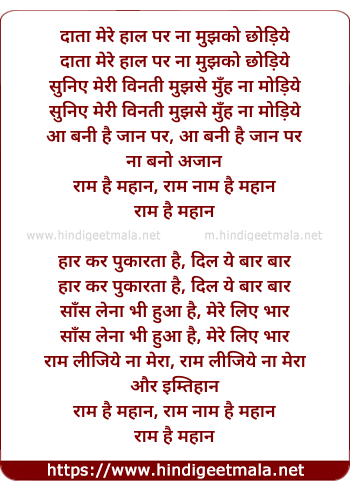 Lyrics of Data Mere Haal Par - दाता मेरे हाल पर
