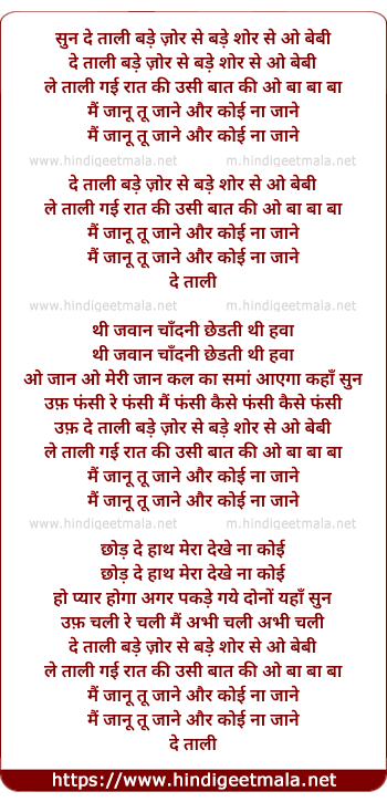 Lyrics of De Taali Bade Jor Se - दे ताली बड़े ज़ोर से