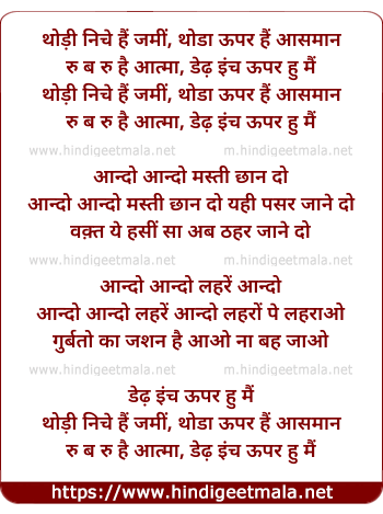 Lyrics of Dedh Inch Oopar Hoon Main - डेढ़ इंच ऊपर हूँ मैं