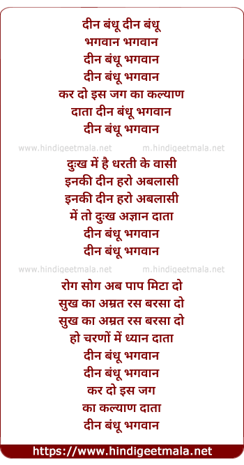 Lyrics of Deen Bandhu Bhagwan - दीन बंधू दीन बंधू
