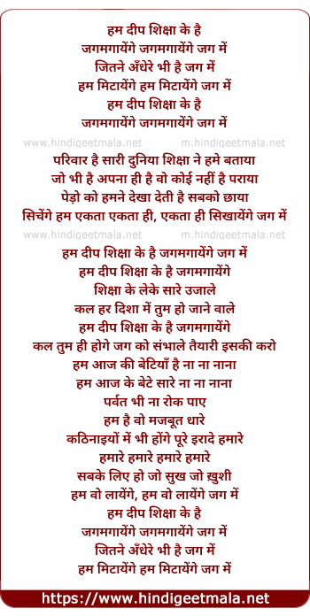 Lyrics of Deep Shikshaa - दीप शिक्षा