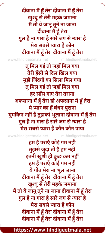 Lyrics of Deewana Mai Hu Tera (Sad) - दीवाना मैं हूँ तेरा