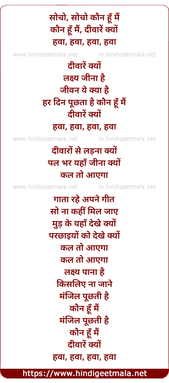 Lyrics of Deewarein Kyun - सोचो, सोचो कौन हूँ मैं