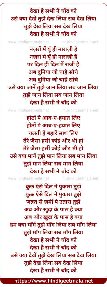 Lyrics of Dekha Hai Sabhi Ne Chand Ko - देखा है सभी ने चाँद को