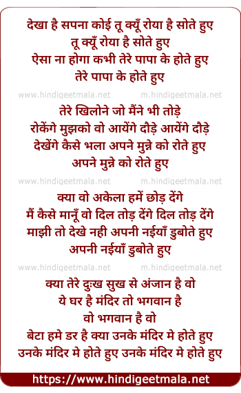 dekha hai sapna koi tu kyu roya hai sote hue