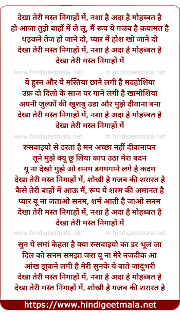 Lyrics of Dekha Teri Mast Nigaho Me - देखा तेरी मस्त निगाहों में