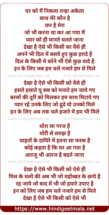 Lyrics of Dekhaa Hai Aise Bhi - देखा है ऐसे भी