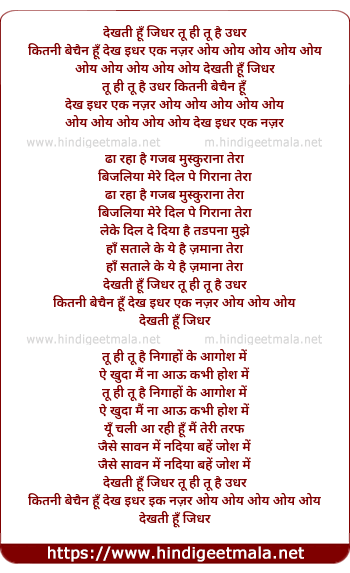 Lyrics of Dekhati Hoon Jidhar Tu Hi Tu Hai Udhar - देखती हूँ जिधर तू ही तू है उधर