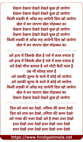 Lyrics of Dekhna Dekhna Dekhte Dekhte - देखना देखना देखते देखते