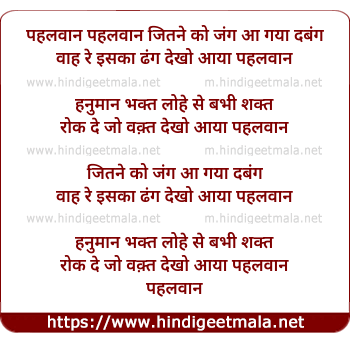 Lyrics of Dekho Aaya Pehlwaan - देखो आया पहलवान